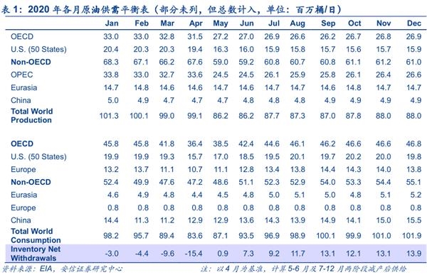 我们认为,油价近期暴跌至“负油价”是美国原油库存空间不足叠加期货合约换月引发“多杀多”导致的异常情况,后续还需留意4月底布伦特原油合约换仓以及5月中下旬WTI合约换仓可能带来的市场波动,这类特殊情形不会是原油市场的常态。