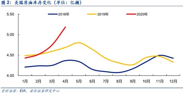 不过,油价为负只是合约换月引发的交易异象。首先,由于5月合约即将进入交割,合约换月在短时间积累了大量卖盘,拉低了油价。其次,实物交割需要足够的库容接纳,在前期供应充足却需求不振的情况下,美国原油库存已接近饱和,储存成本飙升;负油价的出现就意味着将油运送到炼油厂或存储的成本已经超过了石油本身的价值。最后,部分投资者不会选择实物交割而只能在最后被迫平仓,“多杀多”最终导致了负油价的极端情况和当前跨月合约之间的极端价差。