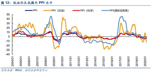 石油作为重要的化工原材料,价格下跌往往会压低整个化工品的价格,造成PPI下滑。同时产成品和能源价格下跌也会进一步压低通胀水平,提升经济的通缩预期。此次原油暴跌后,美联储将基准利率直接降为零利率,以应对经济衰退预期和流动性危机。对于中国来说,未来一段时间通胀压力下滑,降息的政策空间打开。