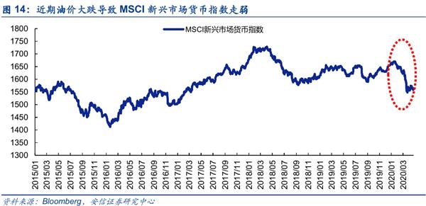 美元流动性危机还可能扩散至新兴市场,对新兴经济体金融市场造成冲击。造成外汇储备流失,兑美元汇率贬值等影响。今年以来,MSCI新兴市场货币指数大幅走弱,从1月14日的1670点跌至4月3日的1555点,贬值幅度高达6.88%。