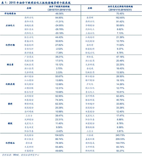 因此,在油价低迷时建议投资者关注石油炼化产业链中靠近下游,与油价波动关联度较小的相关行业: