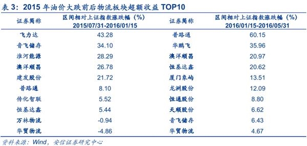燃料成本是快递物流行业的主要成本之一,油价下跌导致的燃料成本下降为快递物流行业带来利好,2015年油价大跌时A股物流板块大部分公司都取得了较好的超额收益(详见下表)。今年油价大跌,快递物流产业同样有望受益,建议关注:顺丰控股、韵达控股、圆通速递、申通快递、建发股份等。