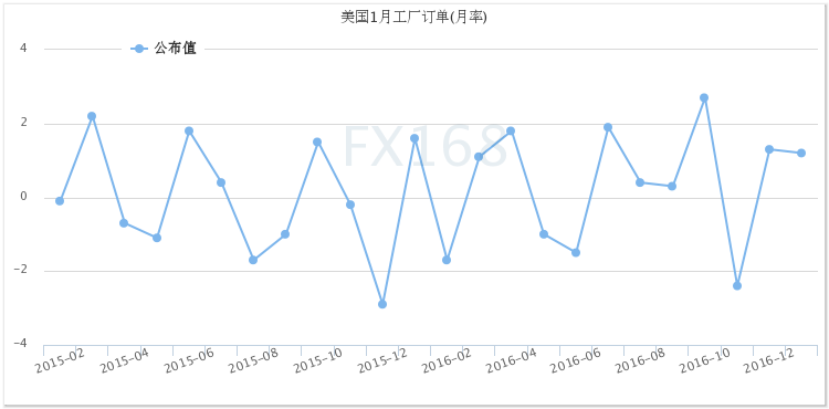 (美国工厂订单月率走势图,来源:FX168财经网)
