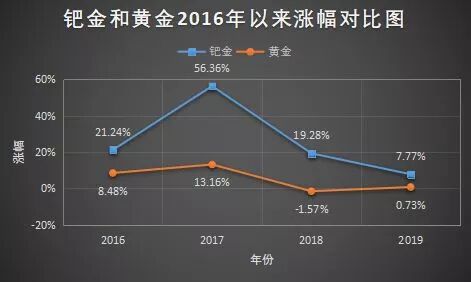 去年12月,钯金价格一举超过黄金价格,为2002年以来首次。自2017年初接近700美元/盎司以来,现货钯金价格在两年时间内已经翻了一倍多。