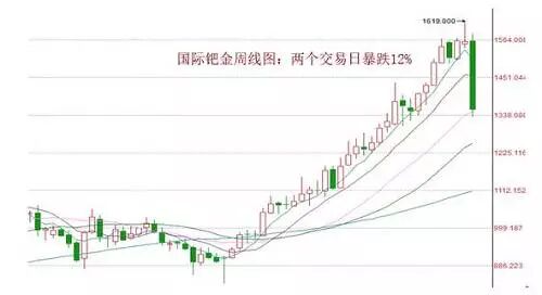 事实上,钯金的惊人行情蔓延至整个贵金属市场,黄金、白银多头此前想依靠钯金“提携”的美梦也在一夜之间破碎。国际白银下破15美元/盎司,日内跌幅接近2%,铂金也“不声不响”跌了20美元/盎司。