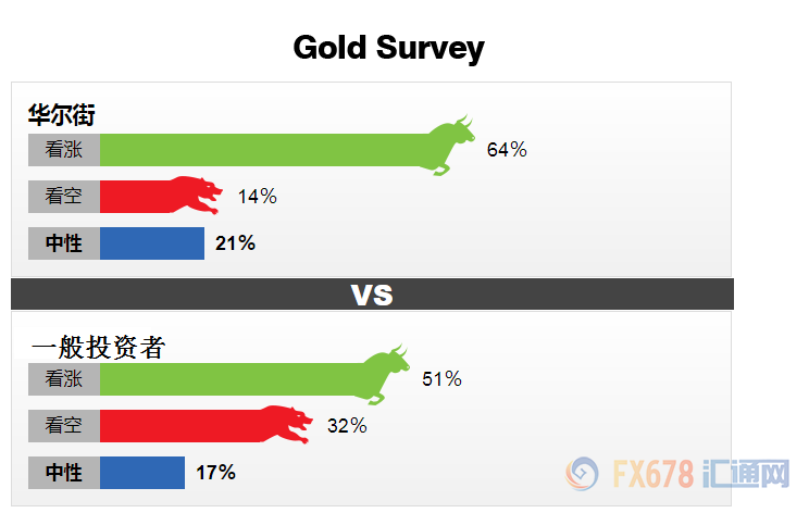 与此同时,一份针对投资者的在线调查显示,受访的589名投资者中,301名(约占51%)认为黄金将会上涨,190名(约占32%)看跌,剩余的98名受访者(约占17%)则持中性的立场。