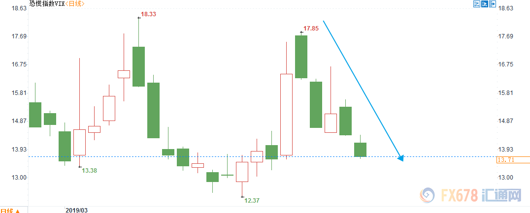 追踪市场风险情绪的恐慌指数显示,该指数在经历了因美债收益率曲线倒挂而短时间大幅上扬后,近期再次回落至14下方,暗示市场风险偏好的回升。如果近期美股出现持续的反弹,可能会导致黄金的进一步走低。