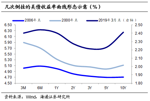 3月下旬虽然10年期国债利率低于3个月和1年期,但考虑到1年及以内的短期国债利率由于美联储货币政策操作进行买卖,实际走势与联邦基金利率基本一致,更加反映市场定价的美国2年期国债利率目前仍低于10年期国债15个BP左右,因此当前美债利率曲线形态与06年和00年的完全倒挂还有区别,衰退或许并没有那么近。