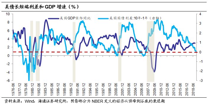 但有两点要注意,一是短暂倒挂并不意味着一定衰退。上世纪70年代以来美国每一次衰退到来之前,美债的长短端利差都率先出现了倒挂。但反过来却不一定,短暂的倒挂未必一定有衰退。如98年美债的10年和2年、10年和1年期利率都短暂倒挂,随后联储多次降息,打开利率下行空间,利差重新扩大,经济也未衰退。
