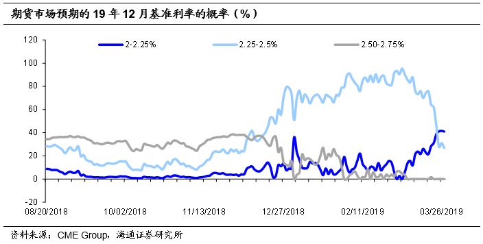 所以,综合考虑经济和通胀前景,以及居民和企业部门的现状,有可能本轮美国加息周期已经到头。虽然3月美联储的议息会议点阵图显示2020年仍可能加一次息,但目前利率期货市场预期美联储今年加息的概率已经降至0%,甚至今年降息的概率还超过了全年不加息的概率,这反映市场或许认为,本轮美联储加息周期已经到头。