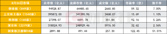 8月25日,创业板注册制18只新股成交294.86亿元,超过科创板整体成交额,159家挂牌公司日内成交282.86亿元。