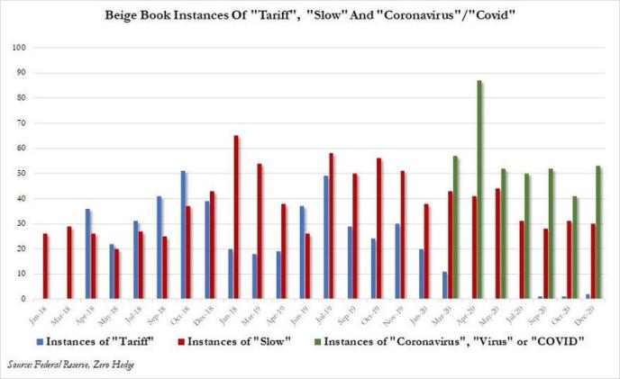 统计褐皮书中出现的字眼会发现,提及“对疫情的担忧”的次数在本次褐皮书中从41飙升至53,为4月份以来最多。