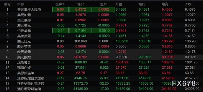 全球主要市场行情一览